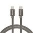 De Grijze Swissten USB-C naar USB-C kabel van 1.2 meter is een duurzame gevlochten nylon kabel met een verstevigde behuizing. Hierdoor is deze USB-C kabel bestemd tegen herhaaldelijk buigen en loskoppelen.